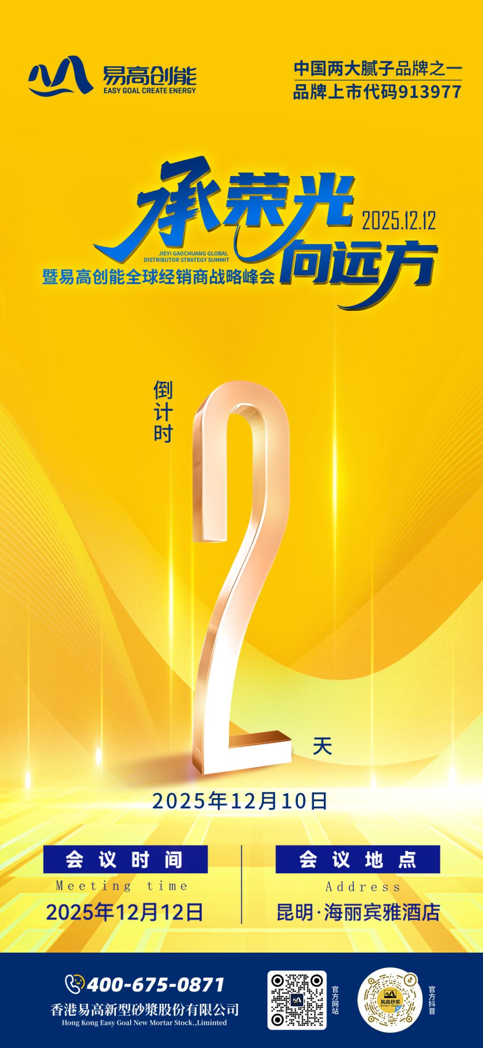 2025年12月12日,“承荣光·向远方”暨2025易高创能全球经销商战略峰会将在中国·昆明盛大启幕。这既是对过往奋斗的集体致敬,更是对未来征程的共同宣言。从战略蓝图到技术革新,从模式升级到全球布局,每一步都体现着易高与合作伙伴“价值共创、成长共担、未来共享”的坚定承诺。让我们携手站在“滇峰”之上,以草本初心,铸健康墙材新标杆;以创新之力,拓未来市场新疆土。